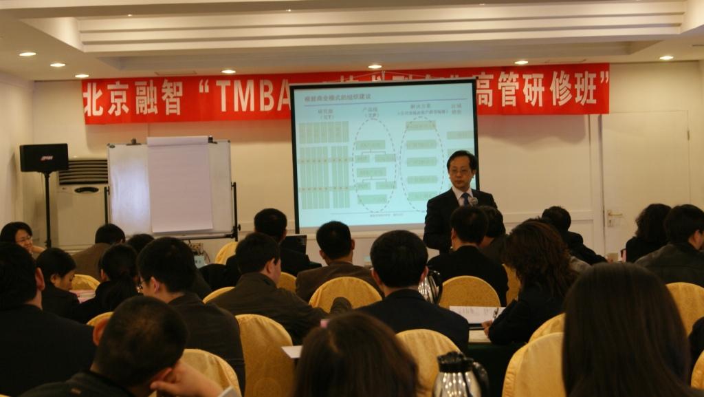 2010年4月22-24日,融智咨詢董事長兼首席顧問周輝老師主講的“TMBA—技術(shù)型企業(yè)高管研修班”2010年開學(xué)典禮暨首次課程在北京成功舉辦, 來自中國運載火箭研究院、電子科技集團29所、青牛軟件、大唐移動、陜西榆林能源等高科技企業(yè)的60多位高管參加了此課程,本次課程是全年的第一期,主要有三門課程《商業(yè)模式設(shè)計和企業(yè)創(chuàng)新原則》《從業(yè)務(wù)骨干轉(zhuǎn)向經(jīng)營管理干部》《突破企業(yè)成長瓶頸,構(gòu)建企業(yè)核心競爭力》三門課程從企業(yè)的商業(yè)模式以及對人的要求及如何構(gòu)建企業(yè)的核心競爭力角度來開始了全年的“TBMA—技術(shù)型企業(yè)高管研修班”反應(yīng)熱烈,大家分組研討,并組織課程分組學(xué)習(xí),學(xué)習(xí)熱情非常高!