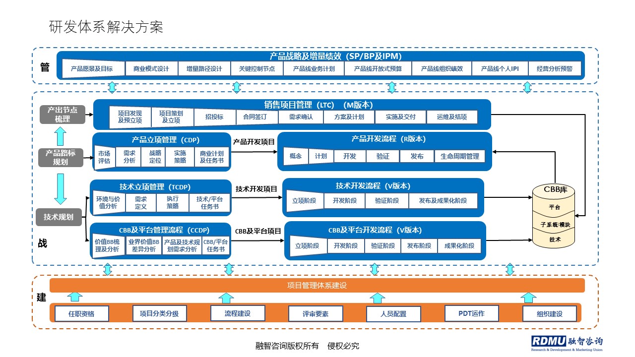 4. 建立基于IPD的流程體系,包括產(chǎn)品開發(fā)流程、CBB流程、定制流程和預(yù)研流程;